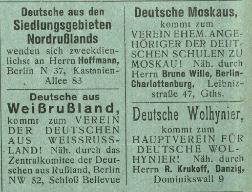 Beschreibung | Vereinsanzeigen in der Zeitschrift Deutsches Leben in Russland, Heft 1, Jahrgang 1934 |