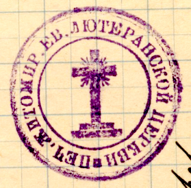 | Beschreibung | Stempel der ev.-luth. Kirche Shitomir in russischer Sprache |